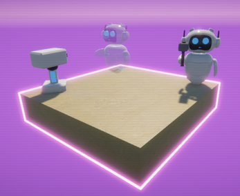 You are a silly robot with a hammer on some platforms floating in the sky, with the ability to create tfs (time fractures) of yourself.